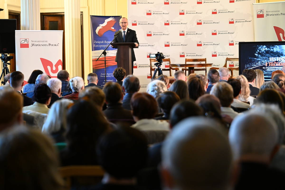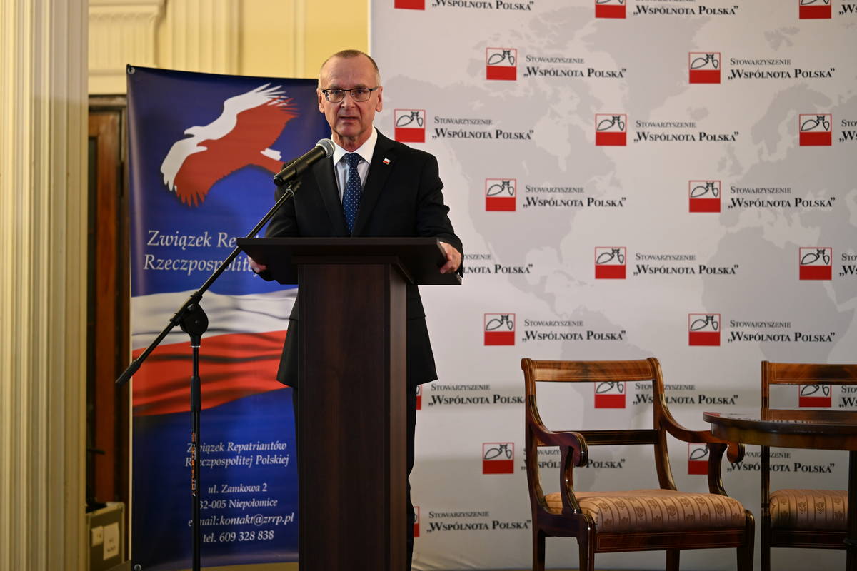 wyrażam ogromną radość z faktu, że Dom Polonii, siedziba Stowarzyszenia Wspólnota Polska, jest miejscem tak ważnego wydarzenia. Bardzo serdecznie dziękuję pani prezes Aleksandrze Ślusarek, że zdecydowała się na uczczenie 90. rocznicy repatriacji, wspólnie będąc partnerem Stowarzyszenia Wspólnota Polska, oraz że to zaproszenie zostało przez Państwa tak wspaniale przyjęte, a sala kolumnowa jest wypełniona po brzegi. To bardzo ważne dla mnie osobiście, ale też, jak sądzę, dla całego stowarzyszenia i dla całej idei.
