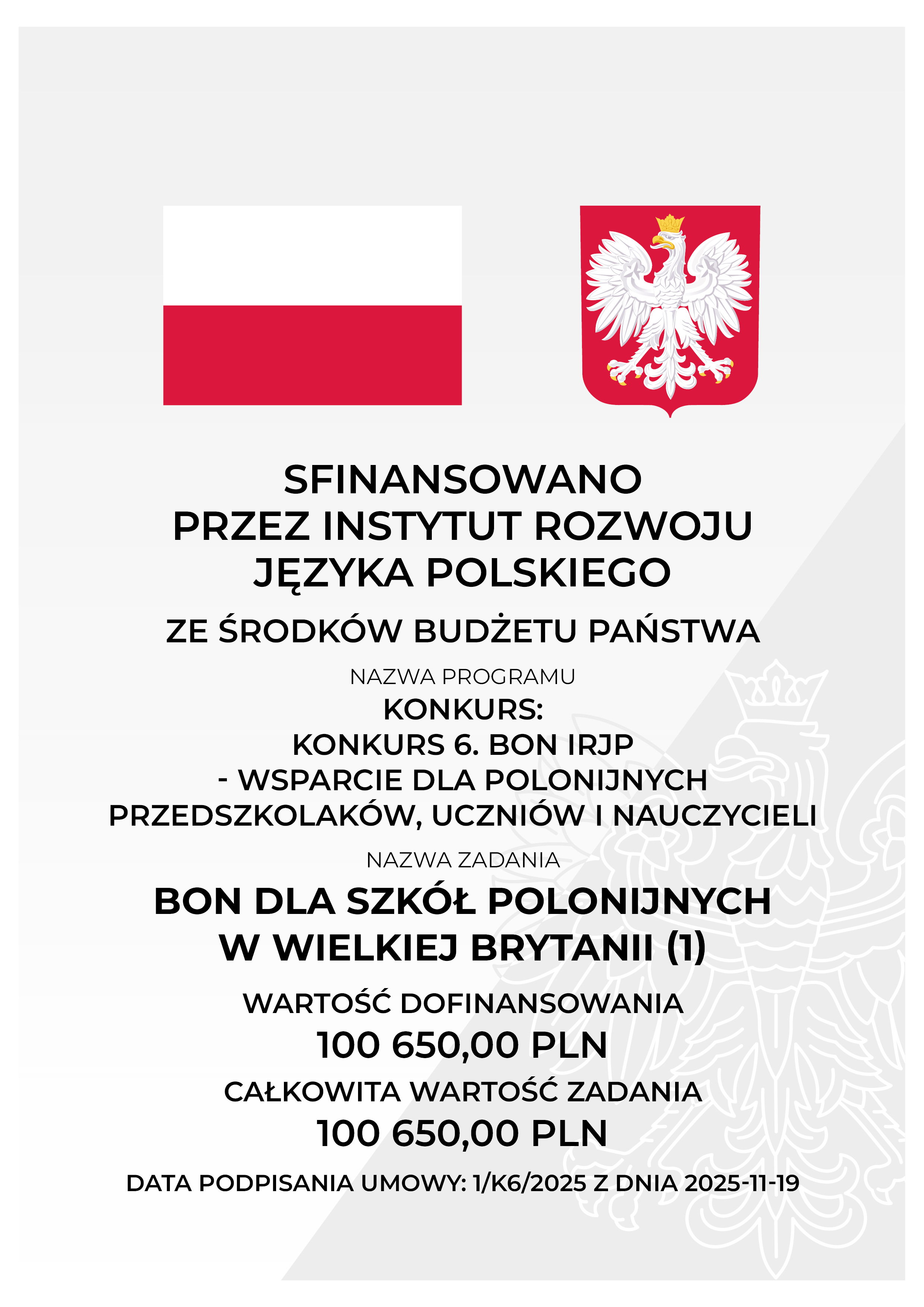 PN. „KONKURS 6. BON IRJP - WSPARCIE DLA POLONIJNYCH PRZEDSZKOLAKÓW, UCZNIÓW I NAUCZYCIELI”