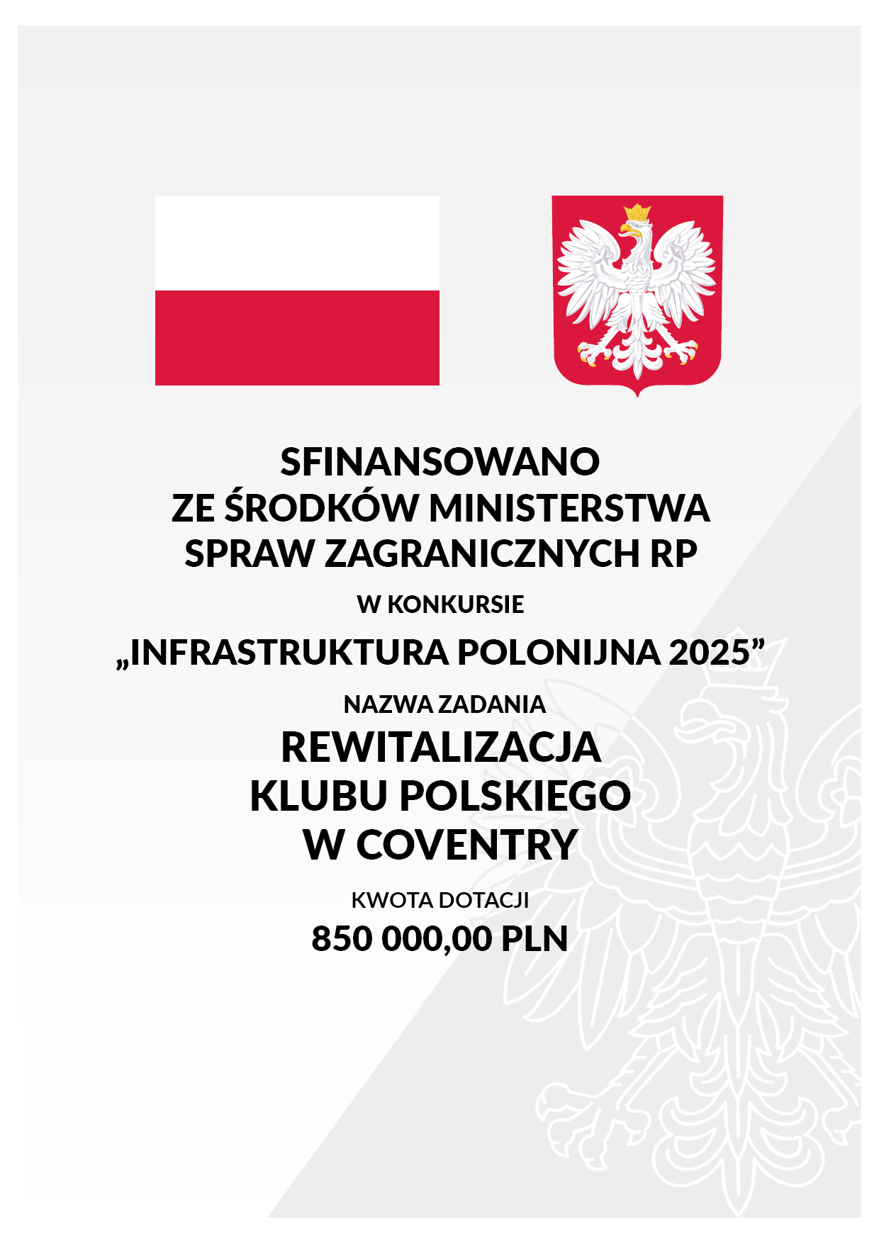 | MIEJSCE REALIZACJI ZADANIA | Klub Polski w Coventry, Wielka Brytania |