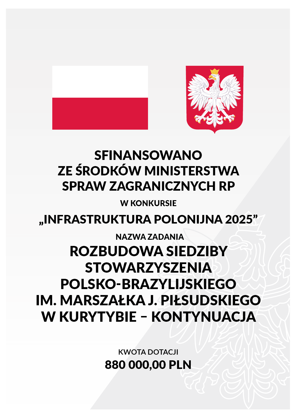 | PARTNER ZADANIA | STOWARZYSZENIE POLSKO-BRAZYLIJSKIE IM. MARSZAŁKA PIŁSUDSKIEGO W KURYTYBIE |