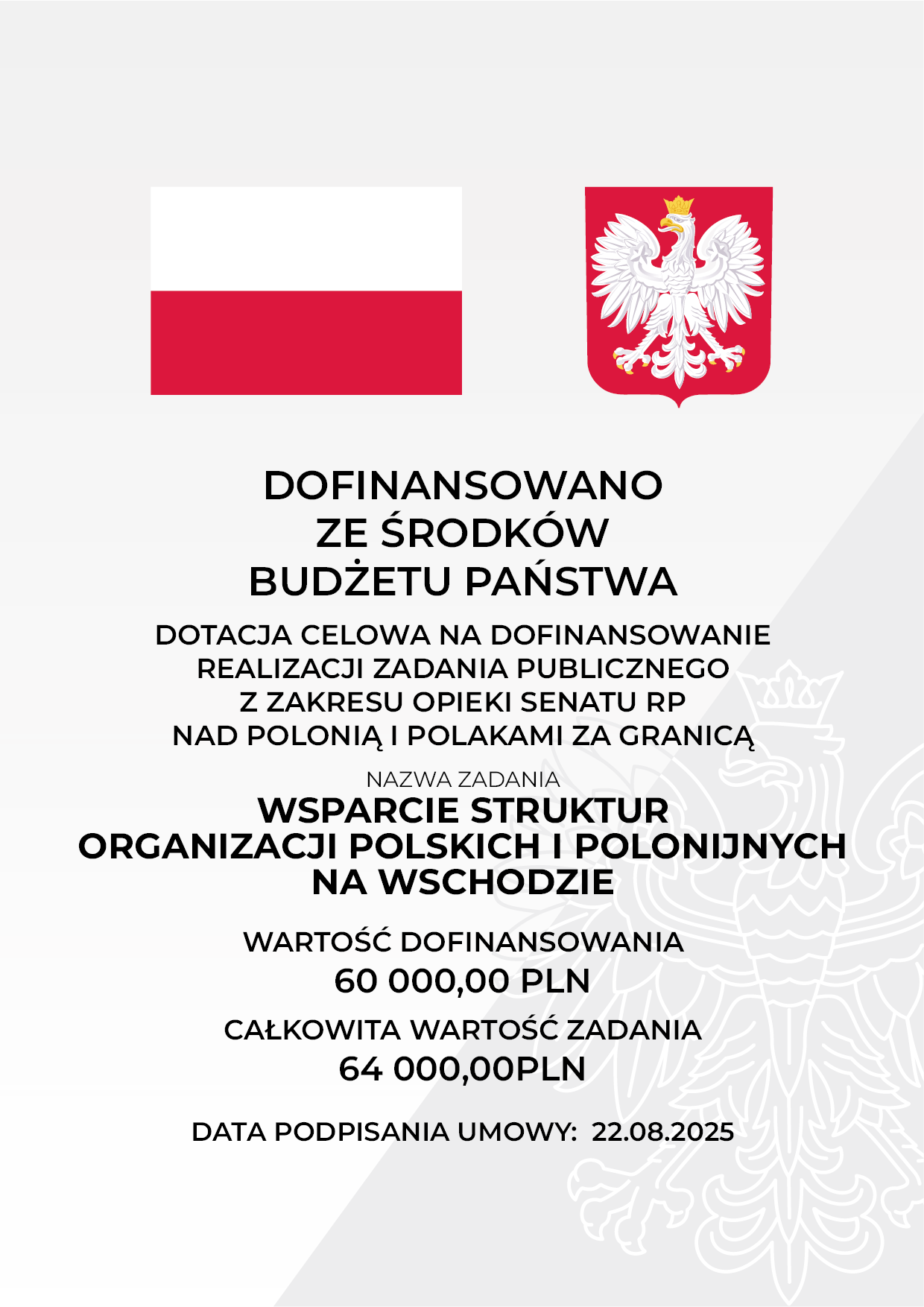 Stowarzyszenie „Wspólnota Polska” pragnie poinformować o realizacji zadania publicznego pn. Wsparcie struktur organizacji polskich i polonijnych na Wschodzie.