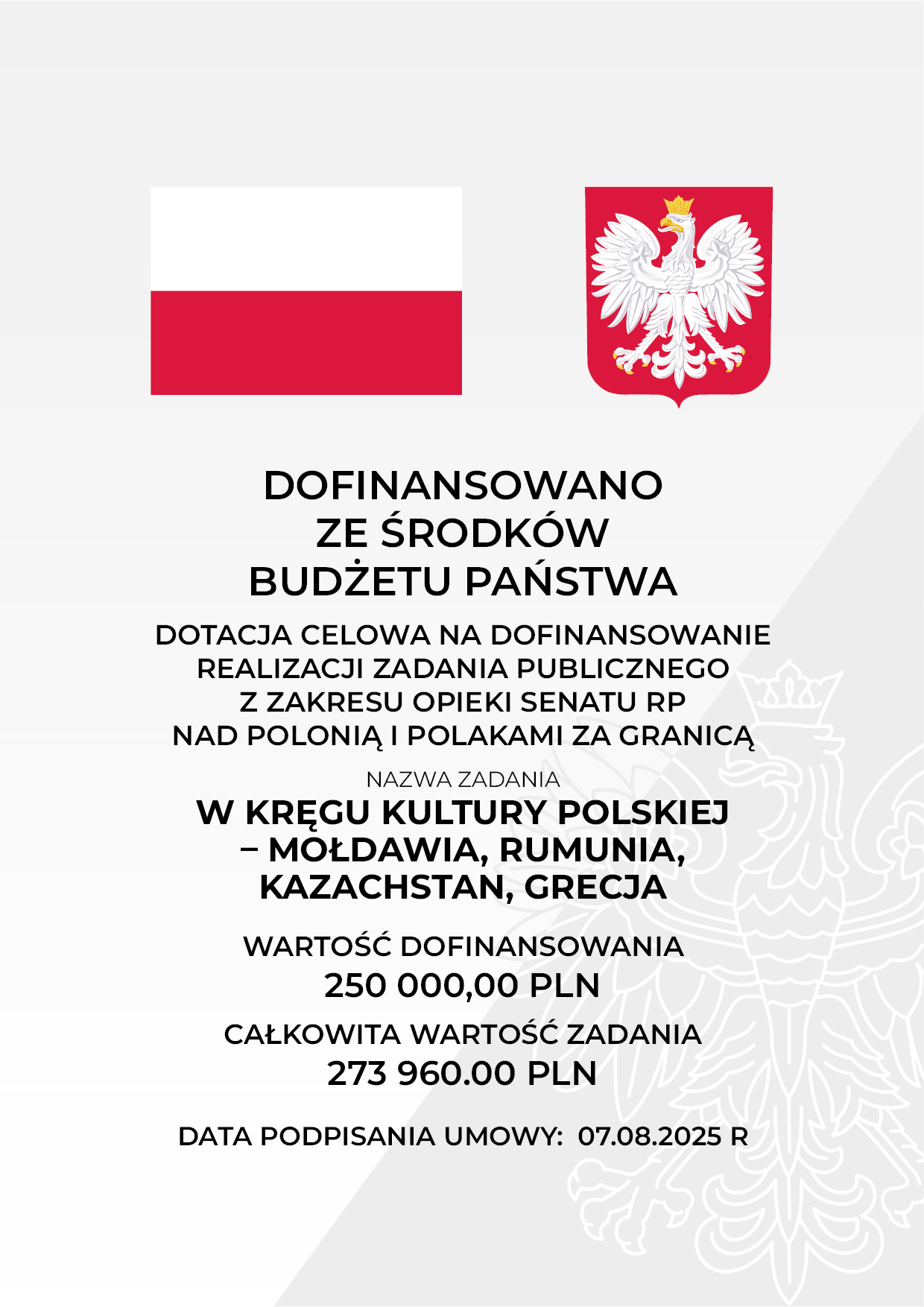Stowarzyszenie „Wspólnota Polska” z radością informuje o realizacji zadania publicznego pn. W kręgu kultury polskiej - Mołdawia, Rumunia, Kazachstan, Grecja, które obejmuje szereg przedsięwzięć służących promocji języka, kultury i historii Polski oraz integracji środowisk polonijnych. W ramach zadania wsparciem objęte zostaną następujące działania oraz współpracujące przy ich realizacji organizacje partnerskie: