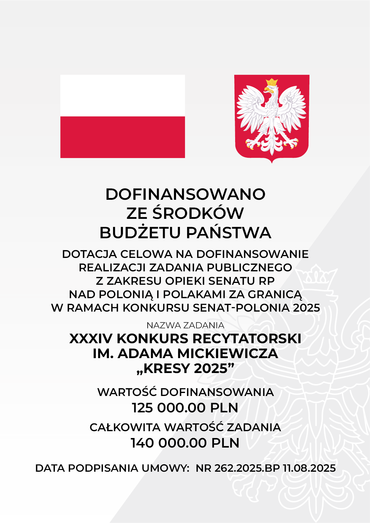 Stowarzyszenie „Wspólnota Polska” z przyjemnością informuje o realizacji zadania publicznego pn. XXXIV Konkurs Recytatorski im. Adama Mickiewicza„Kresy 2025. Zadanie dedykowane jest dzieciom, młodzieży i dorosłym z polskich środowisk w Białorusi, Litwie, Łotwie, Ukrainie, Mołdawii, Rumunii, Kazachstanie, Gruzji oraz Czechach.