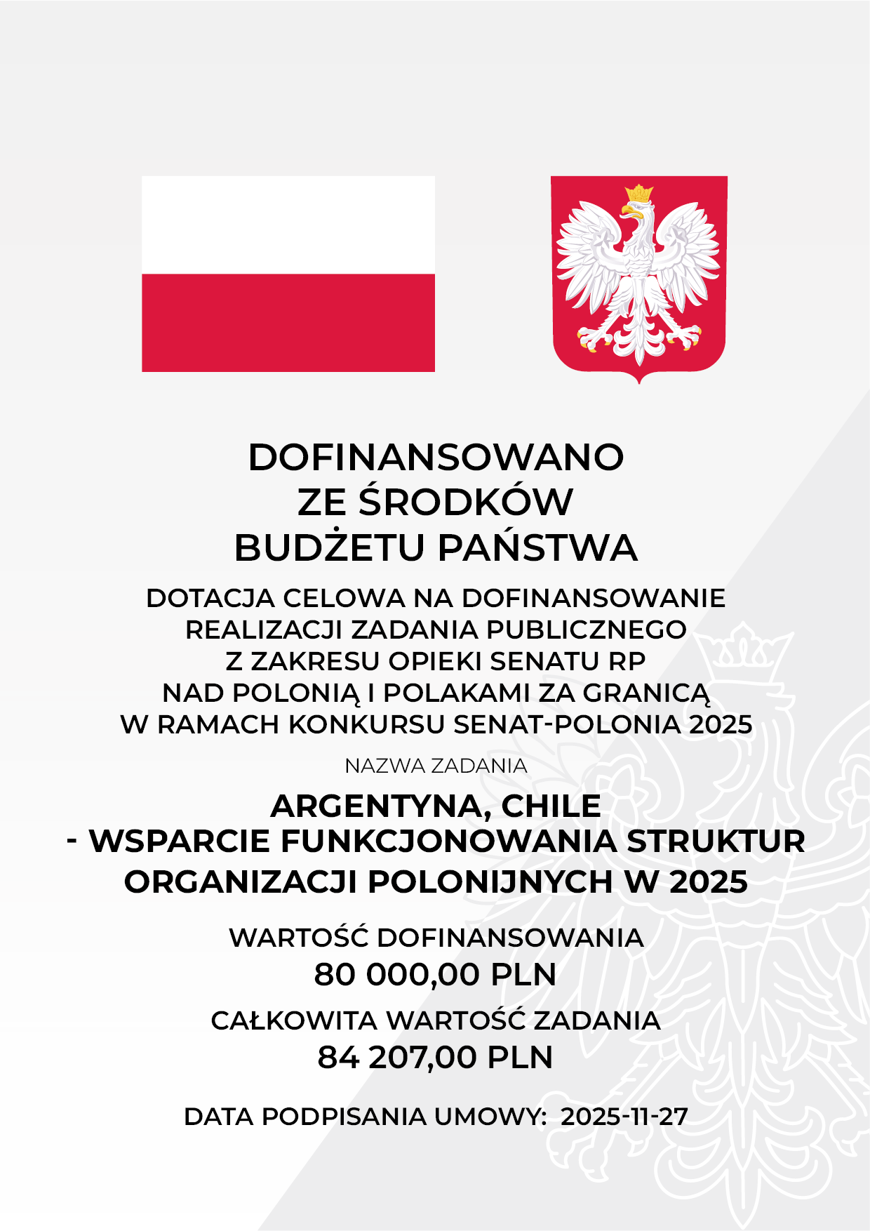 Stowarzyszenie „Wspólnota Polska” pragnie poinformować o realizacji zadania publicznego pn. Argentyna, Chile - Wsparcie funkcjonowania struktur organizacji polonijnych w 2025”