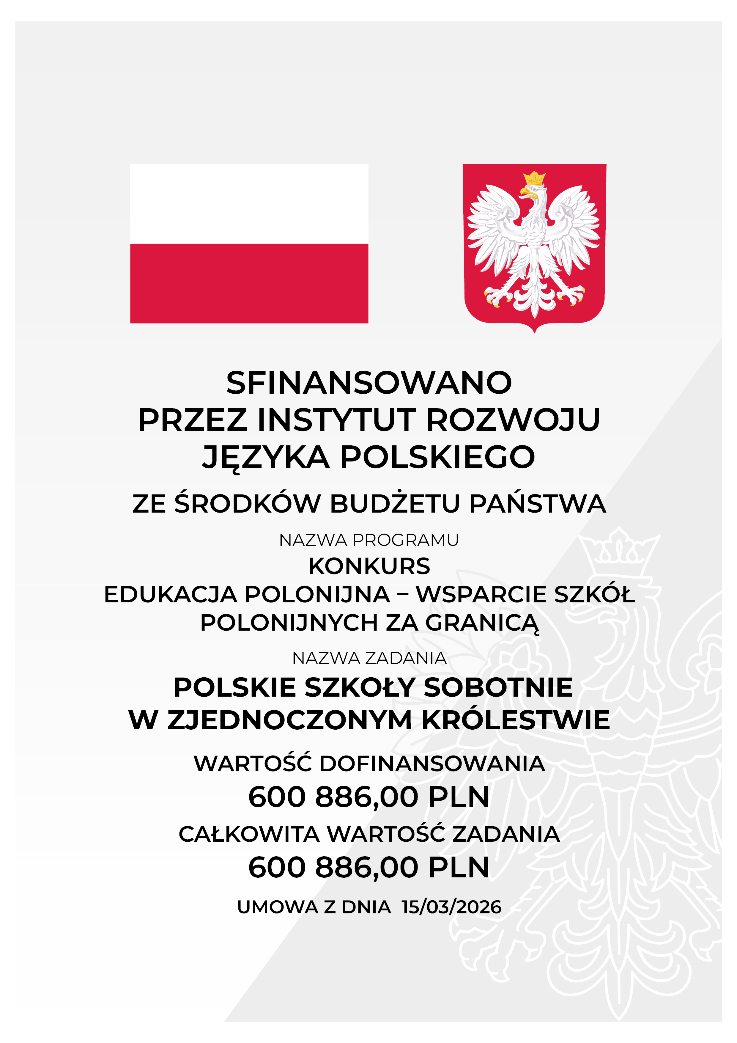 Stowarzyszenie „Wspólnota Polska” z radością informuje o realizacji zadania „Polskie Szkoły Sobotnie w Zjednoczonym Królestwie”. W ramach tego przedsięwzięcia, wsparcie finansowe otrzymały następujące organizacje polonijne: