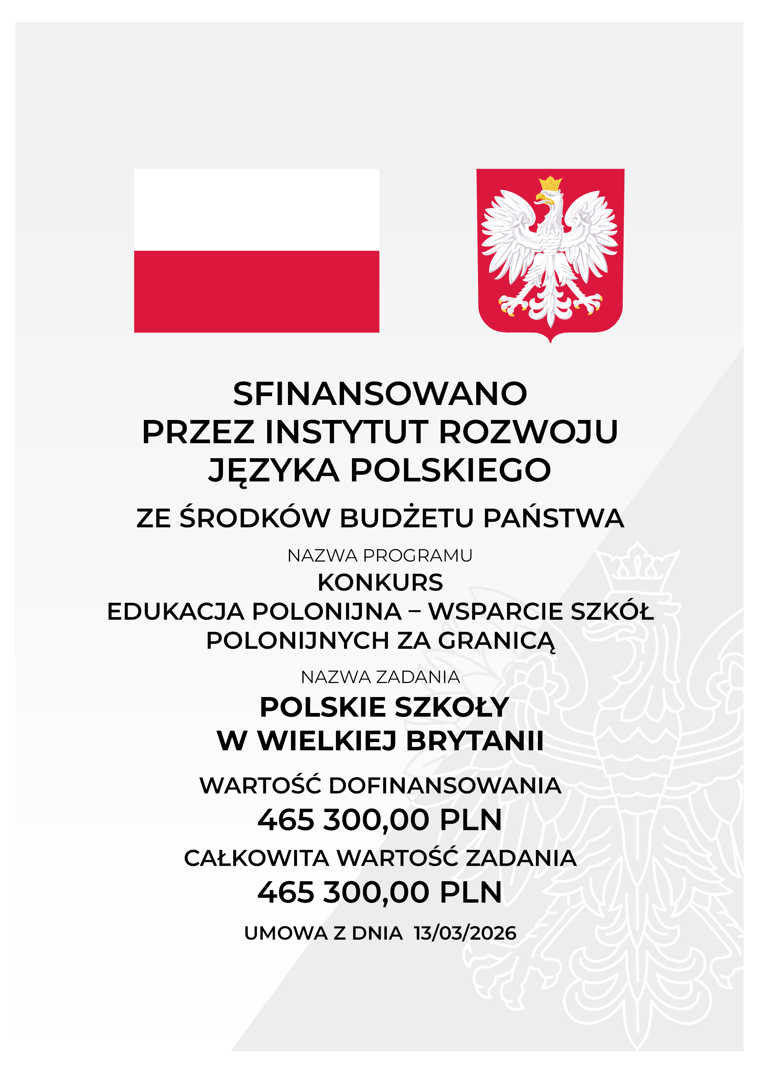 Stowarzyszenie „Wspólnota Polska” z radością informuje o realizacji zadania „Polskie Szkoły w Wielkiej Brytanii”. W ramach tego przedsięwzięcia, wsparcie finansowe otrzymały następujące organizacje polonijne: