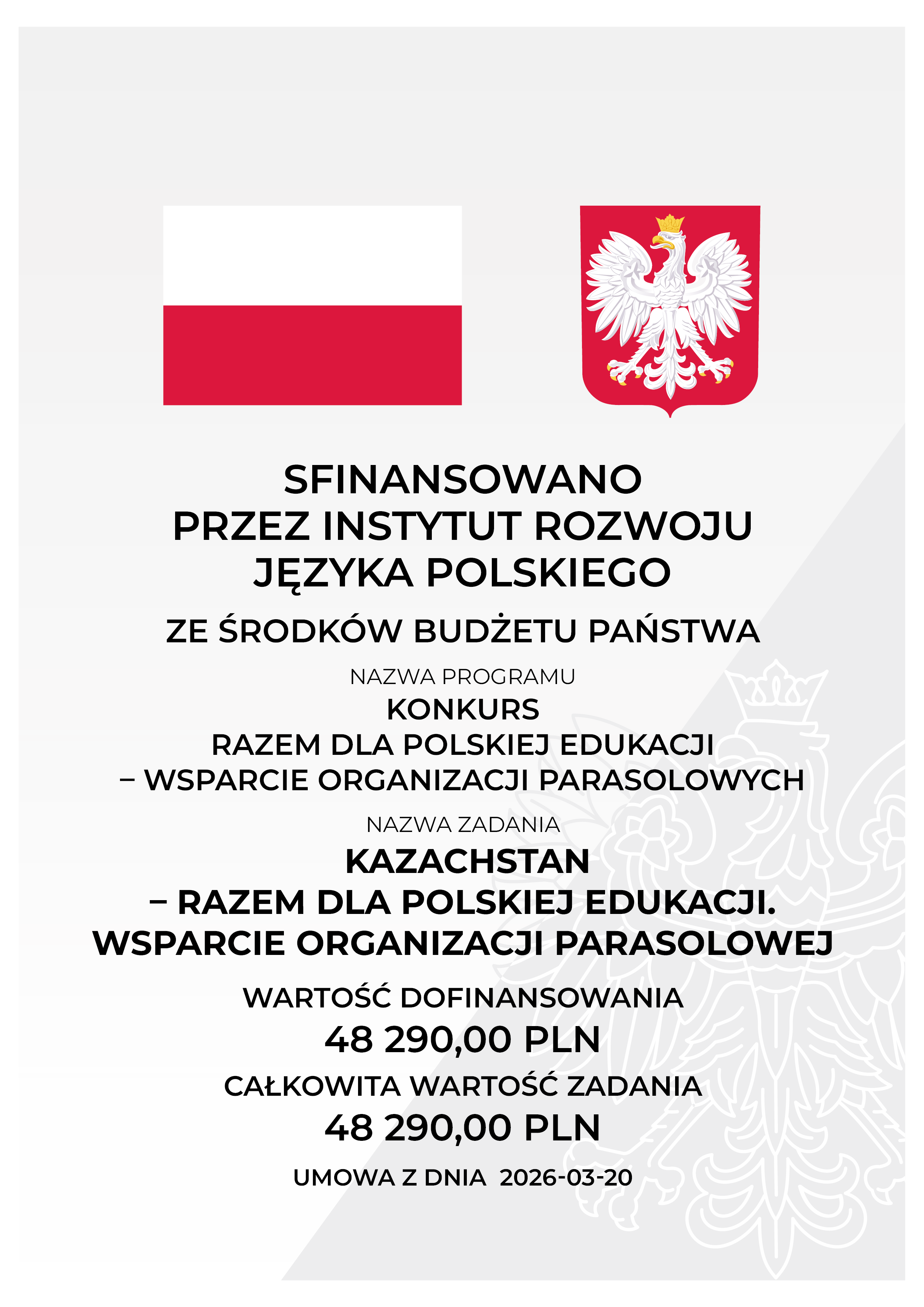 Stowarzyszenie „Wspólnota Polska” z radością informuje o realizacji zadania „Kazachstan – razem dla polskiej edukacji. Wsparcie organizacji parasolowej”. W ramach tego przedsięwzięcia, wsparcie finansowe otrzymały następujące organizacje polonijne:
